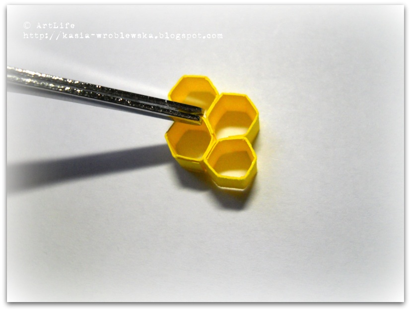 8. Готовые сотки у меня выглядят так. Теперь задалась вопросом медку! Есть вариантов несколько: глиттер желтенький (недавно видела в магазине, но когда туда пришла, то его уже не было), желтый бисер, жидкий жемчуг желтого цвета, силикон или любой другой густой клей, присыпанный глиттером или карандашной стружкой, а может витражные краски как-то приспособить?