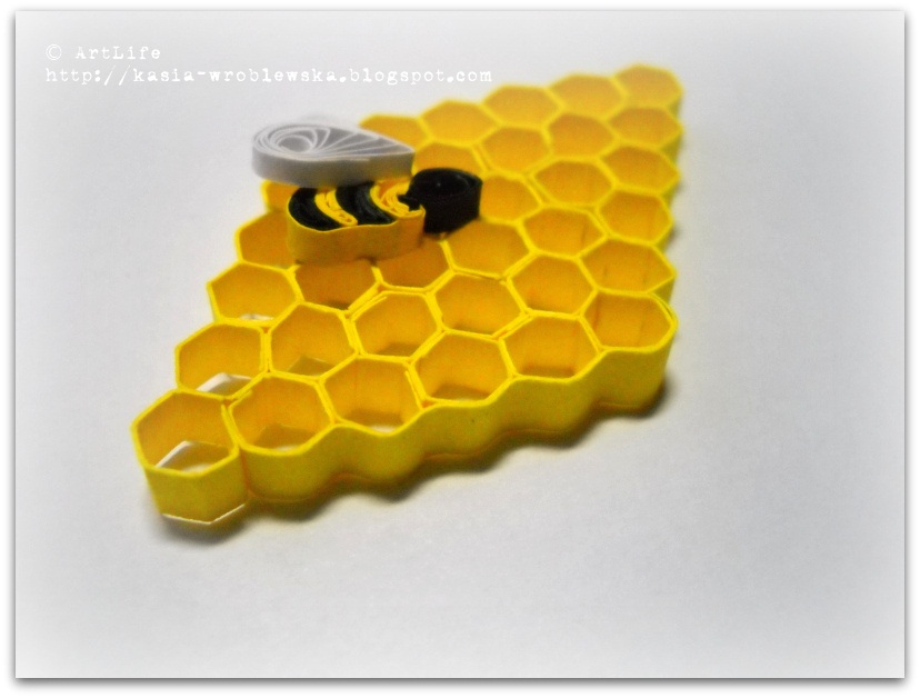 7. Затем готовые соты оклеиваем целой полоской для закрепления всей конструкции и добавляем пчелку Майю или несколько :).