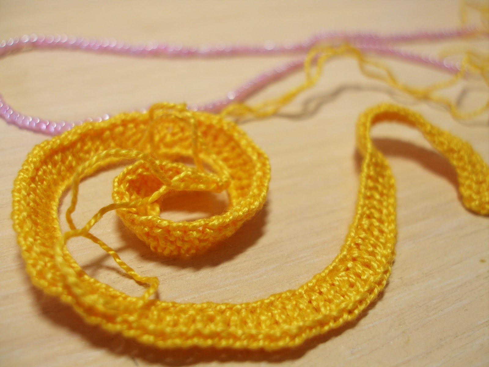 Вторая половина - в каждой 3 ВП провязываем по 2 СТ. С Н, Лента закручивается еще сильнее, этот край пойдет в сердцевину цветка.