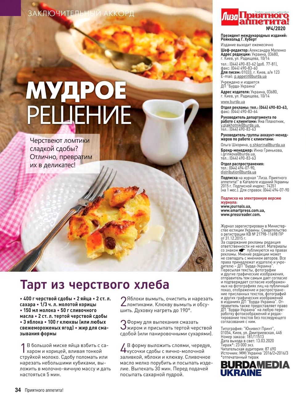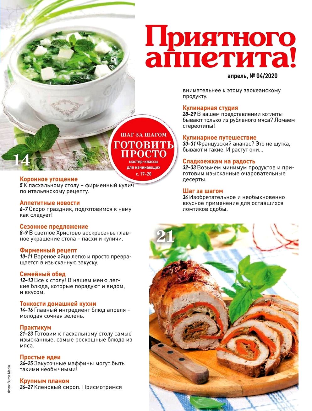 Приятного аппетита!». В каждом номере издания - разнообразные рецепты для семейных будней и