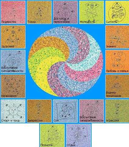 2. Зрительно-тактильно-словесное восприятие картин в коррекционно-оздоровительных сериях, т.е. в процессе зрительного и кожного восприятия цветового образного фона, проговаривая (вслух или про себя) волнующую проблему.