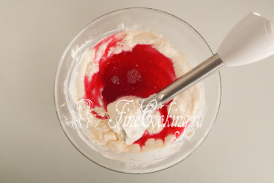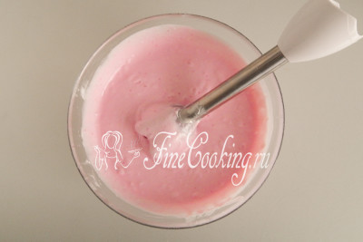 Еще раз пробиваем все до однородности погружным блендером. Вишневое и клюквенное желе дают розовый цвет, клубничное, земляничное и малиновое - бледно-красный, апельсиновое и лимонное - желтый, а вот киви - зеленоватый.