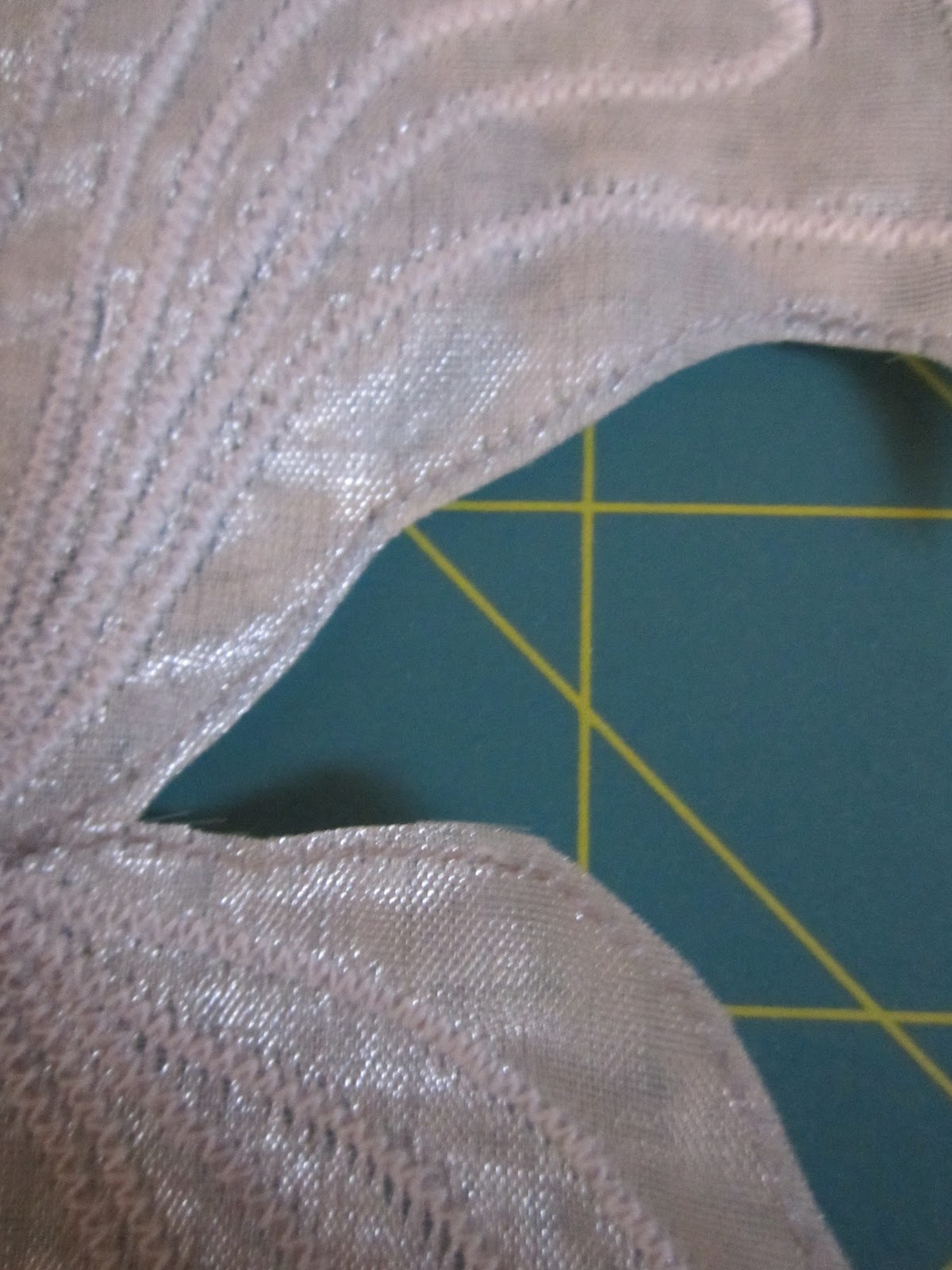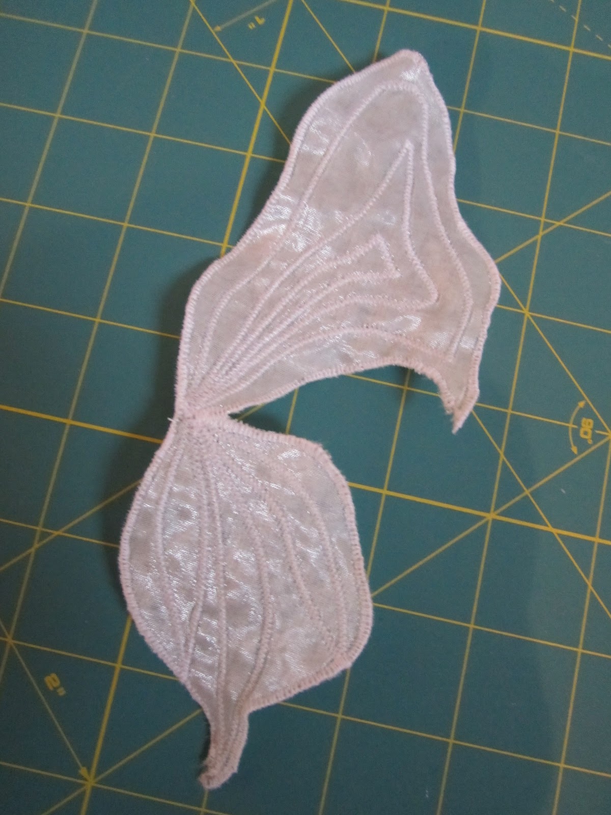 затем аккуратно вырезаем наше крылышко и обрабатываем край частой , не узкой ( у меня 3,5 мм) строчкой зиг-заг