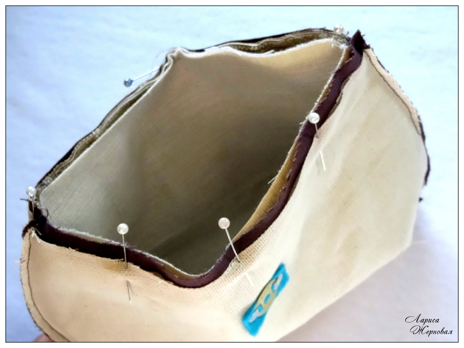 Подкладку сшить с косметичкой и вывернуть через не зашитое отверстие в подкладке.