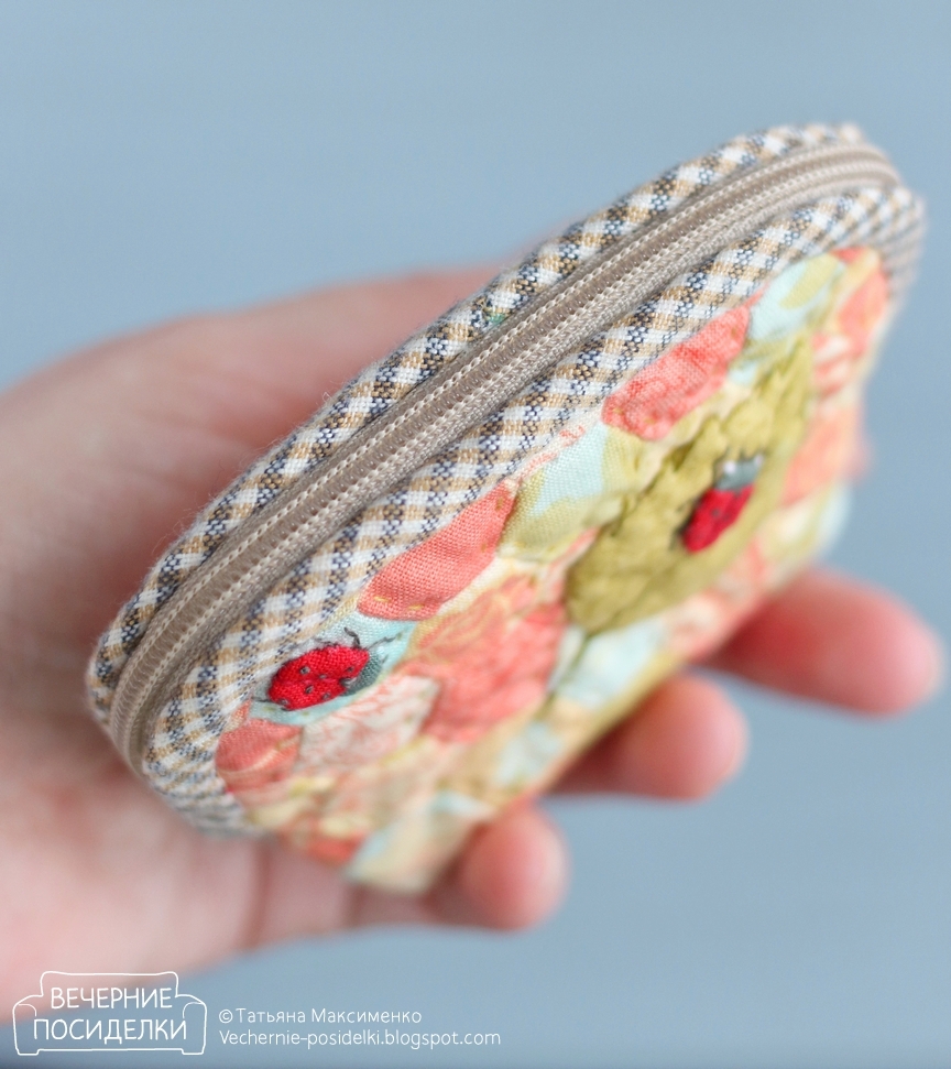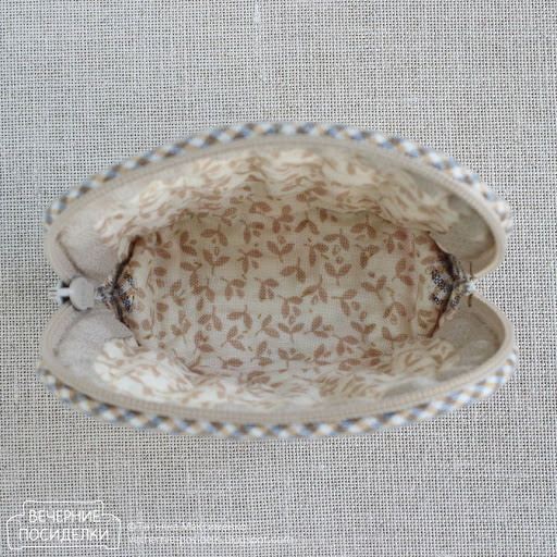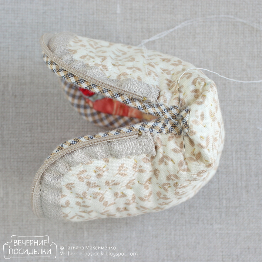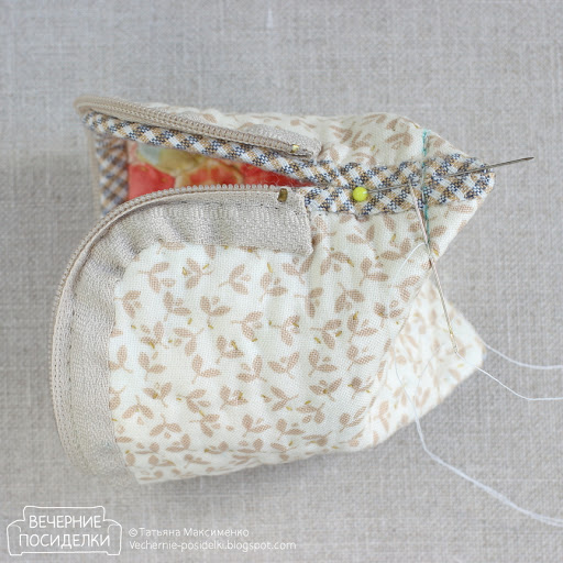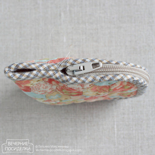 8. Отступив от застёжки-молнии около 5 мм с обеих сторон косметички, сшейте открытые участки. Швы можно выполнять с лицевой или с изнаночной стороны потайным швом или мелкими стежками через край.