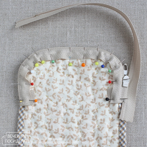 7. Приколите и пришейте вторую тесьму застёжки-молнии ко второй короткой стороне основы аналогично.
