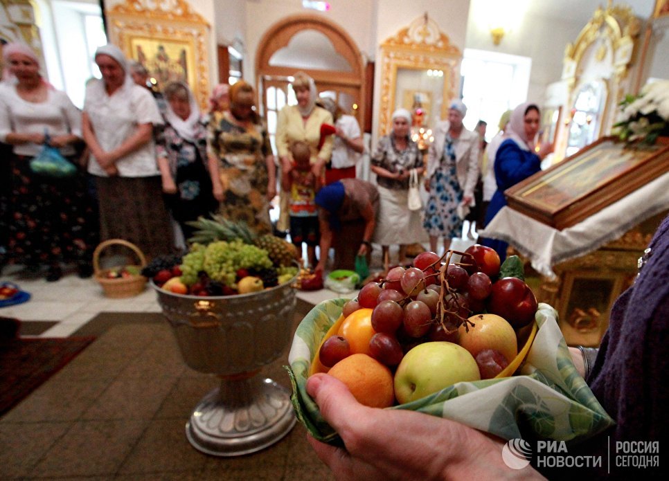 Традиционно в этот день в храмах проходят торжественные богослужения и обряды освящения небольших корзинок прихожан. Конечно же, освящаются яблоки, вместе с ними ягоды, фрукты и овощи.
