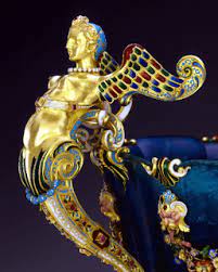 А вот оправу для кувшина изготовил французский ювелир Жан-Валентин Морель в 1854 году.XIX век пробудил интерес общества к искусству средневековья и эпохи Возрождения. Именно в это время было положено начало созданию знаменитых коллекций, таких как коллекция предметов искусства Ротшильдов. Многие ювелиры того времени специализировались на создании изделий в стиле неоренессанса и на реставрации старинных украшений. Именно такими работами и прославился Жан-Валентин Морель.