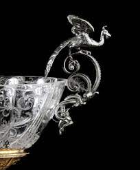 Тацца в стиле неоренессанса из позолоченного серебра со стеклянным вкладышем, Жан-Валентин Морель, 1849 г., из коллекции музея Виктории и Альберта.