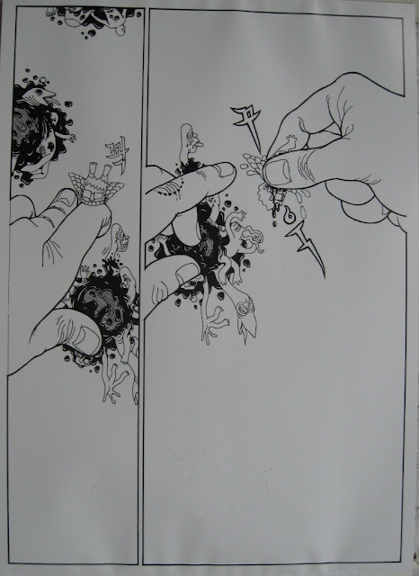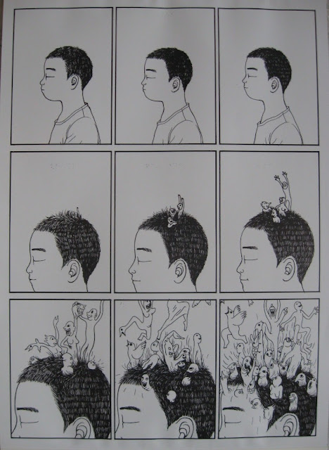 А во втором зале целая куча работ наших родных русских художников. Действительно много достойных, очень талантливых работ. Я там походила, почитала и мне аж захотелось сотворить хоть небольшой какой-нибудь комикс! Собственно, в веб-альбоме есть несколько фотографий, но посмотреть их в хорошем качестве, а также проголосовать за понравившиеся можно здесь. Например, понравилась новелла про Мусю Пинкензона, очень поэтическая зарисовка про богатыря Святогора, милая и трогательная история фрау фон Штакельберг и ундины Джус, трагическая история любви "Ключ продукта" Лены Ужиновой, конечно, Дерьмовочка Хихуса, да и много чего ещё.
