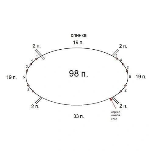 Расставляем маркеры согласно схеме респределения петель реглана (фото 3 в карусели).
