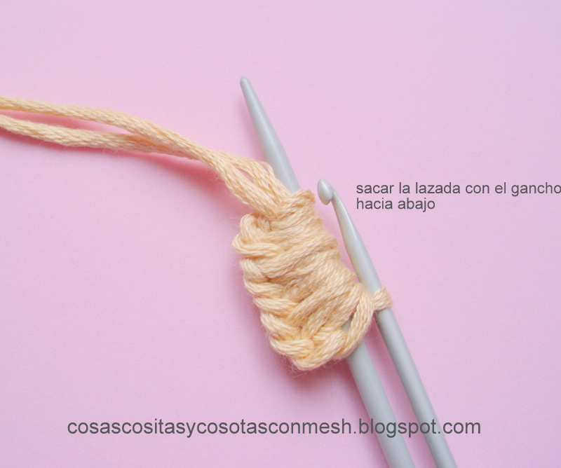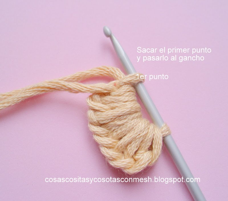 4.-Pasaremos a nuestro gancho el primer punto que quedo y, asi formaremos el abanico