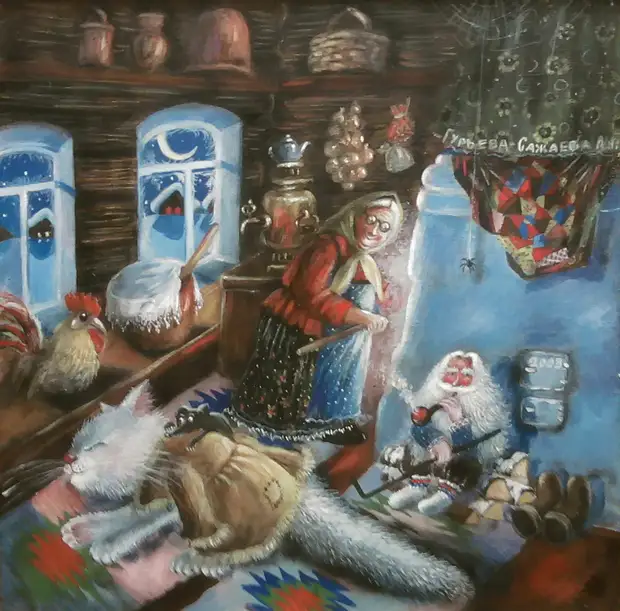 Неудивительно, что она со своим особым видением мира рисует иллюстрации для детских сказок. Сейчас, когда многие книги иллюстрируются с помощью компьютерной графики, простые и добрые картины Александры Гурьевой-Сажаевой воспринимаются особенно ярко, как будто сам попал в сказку.
