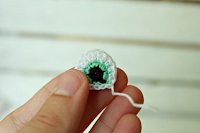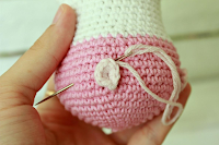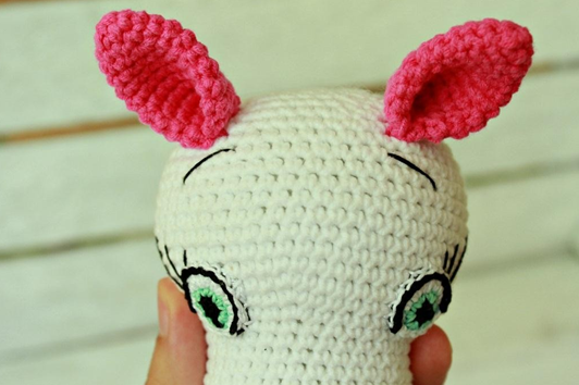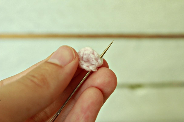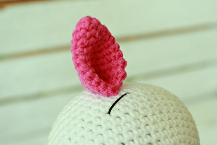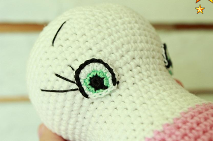9 СБН в кольцо амигуруми, сшиваем края вместе и пришиваем к мордочке.