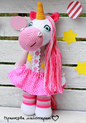 Вязаная крючком единорог. Автор игрушки - Диана Пацкун (https://vk.com/d.patskun).