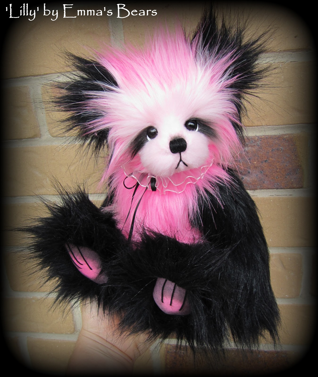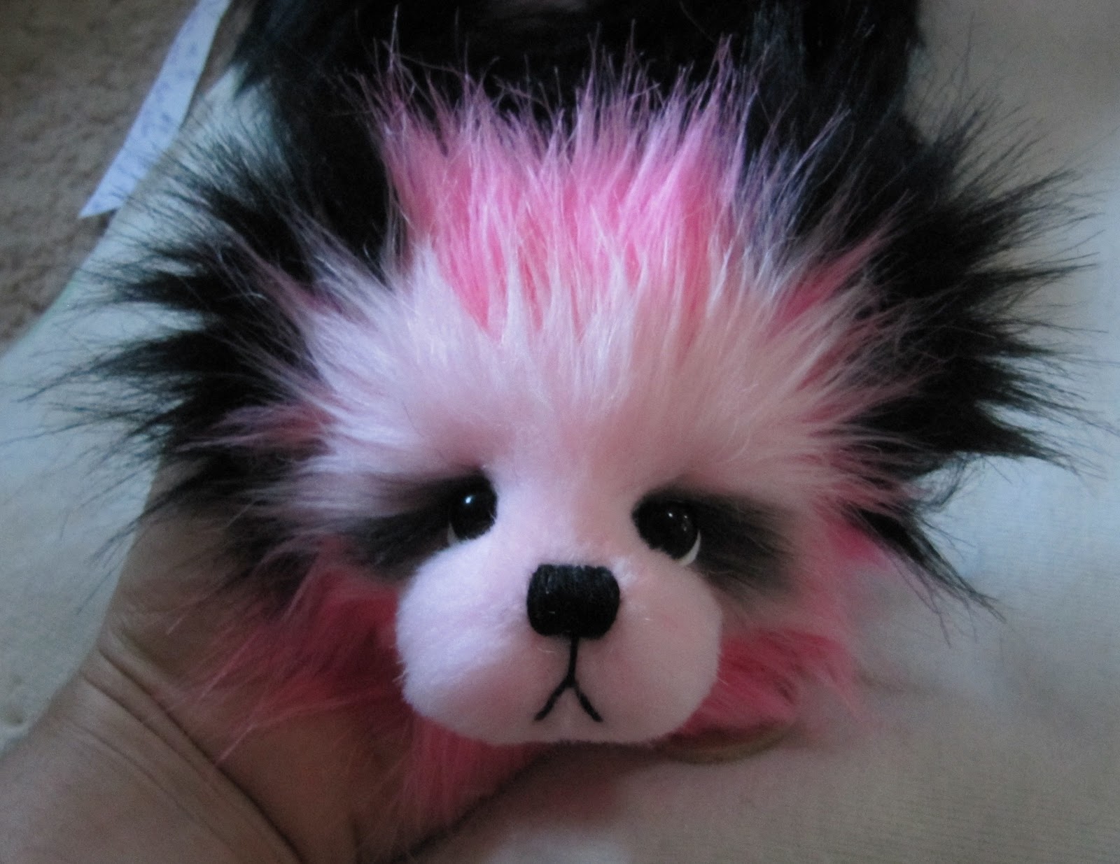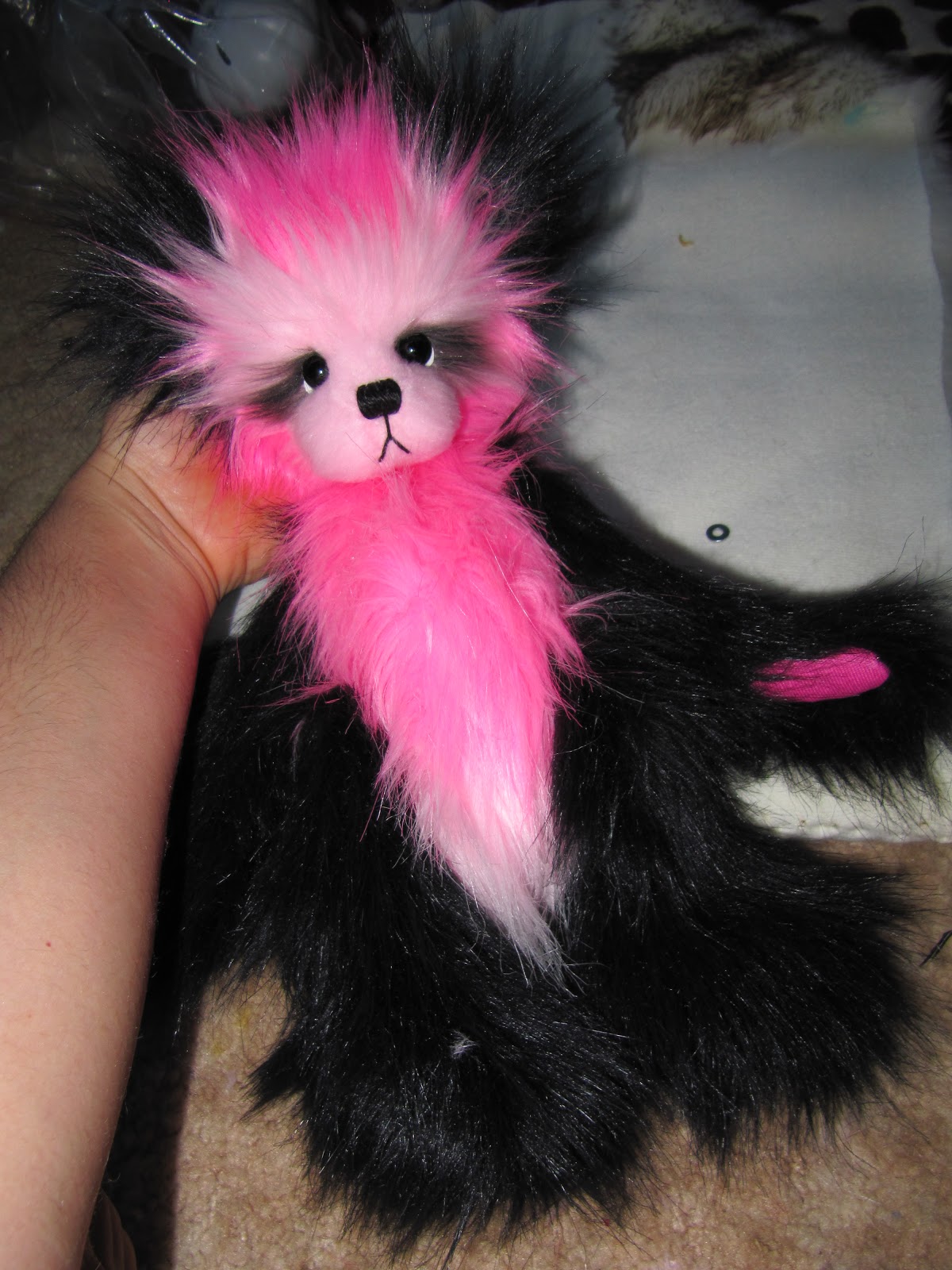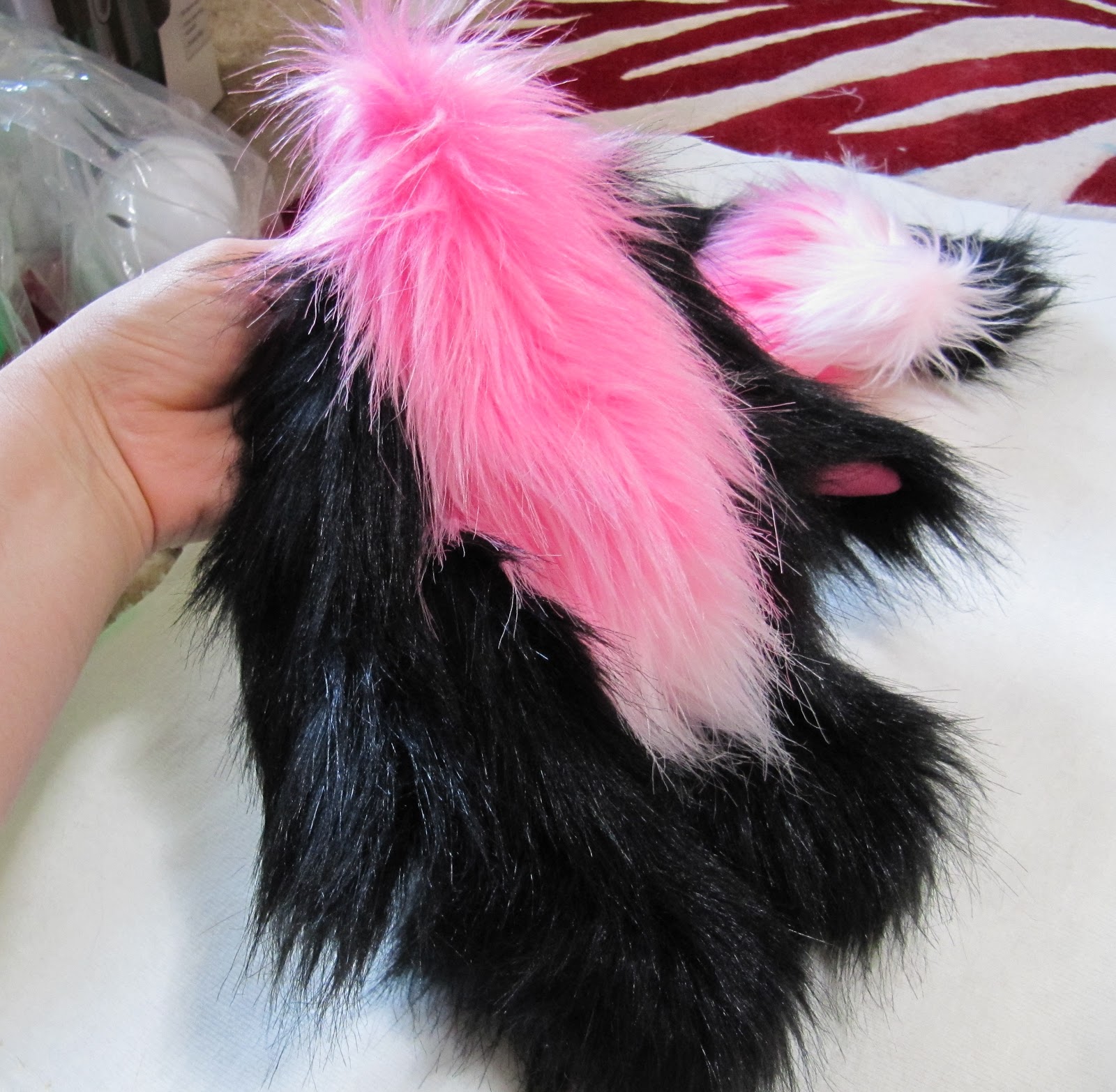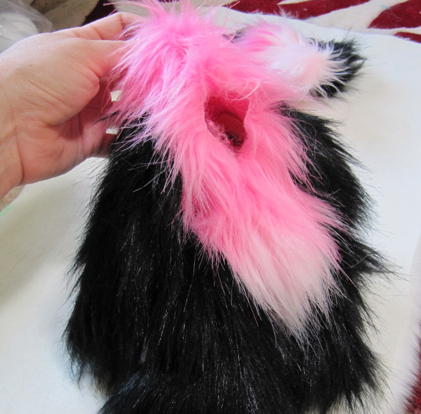 Мы решили сделать ее в стиле панда, используя наш черный и розовый из искусственного меха (кокосовый лед и Туз пик). Мы не смешивают эти две ткани вместе, прежде чем, ни было, мы сделали этот узор из искусственного меха раньше, поэтому он был немного эксперимент!