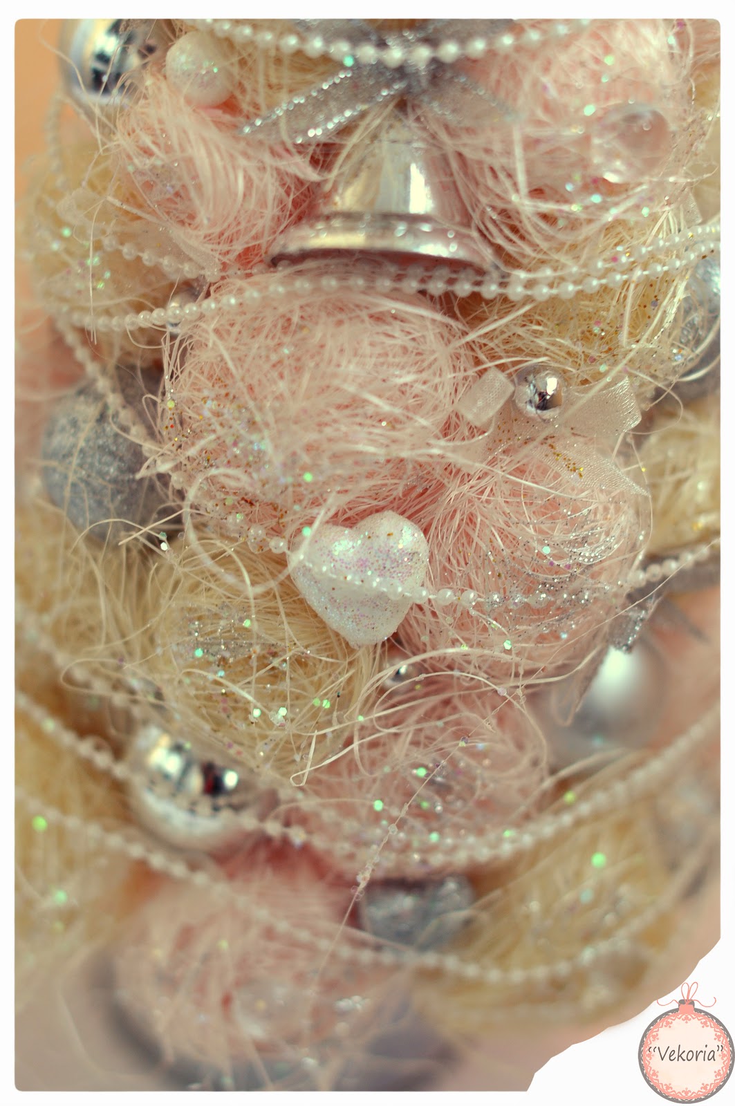 Захотелось сделать ёлочку в нежных цветах,с имитировать снег на ёлке,добавить цветы.