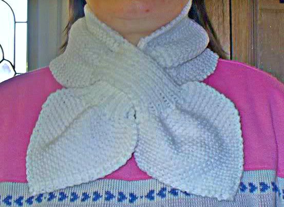 Лет так 9-10 тому назад зашла в блог какой-то американской мастерицы и увидела подобный шарфик. Ни выкройки, ни описания там не было. Потом случайно потеряла ссылочку на тот блог. Пришлось вязать по памяти.