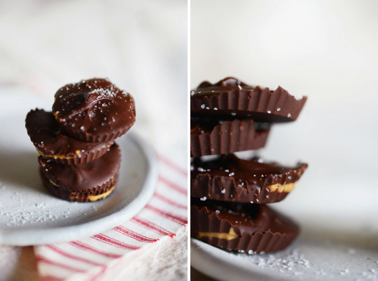 В этом рецепте самое сложное — это найти арахисовое масло. После этого дело пойдёт легко! Растопив полстакана колотого шоколада, разлейте его в формочки для кексов. Пальцами скатайте из арахисового масла шарики и опускайте по одному шарику в каждую формочку с шоколадом. Затем ложкой добавляйте шоколад поверх арахисового масла так, чтобы оно оказалось в серединке. После всех этих манипуляций можно слегка посыпать десерт морской солью и поставить в морозилку на 15-30 минут.