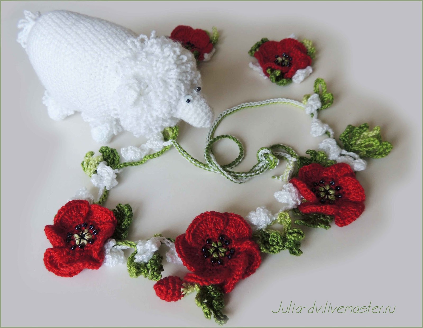 Часть 29 - Бусы вязаные с маками и белая овечка