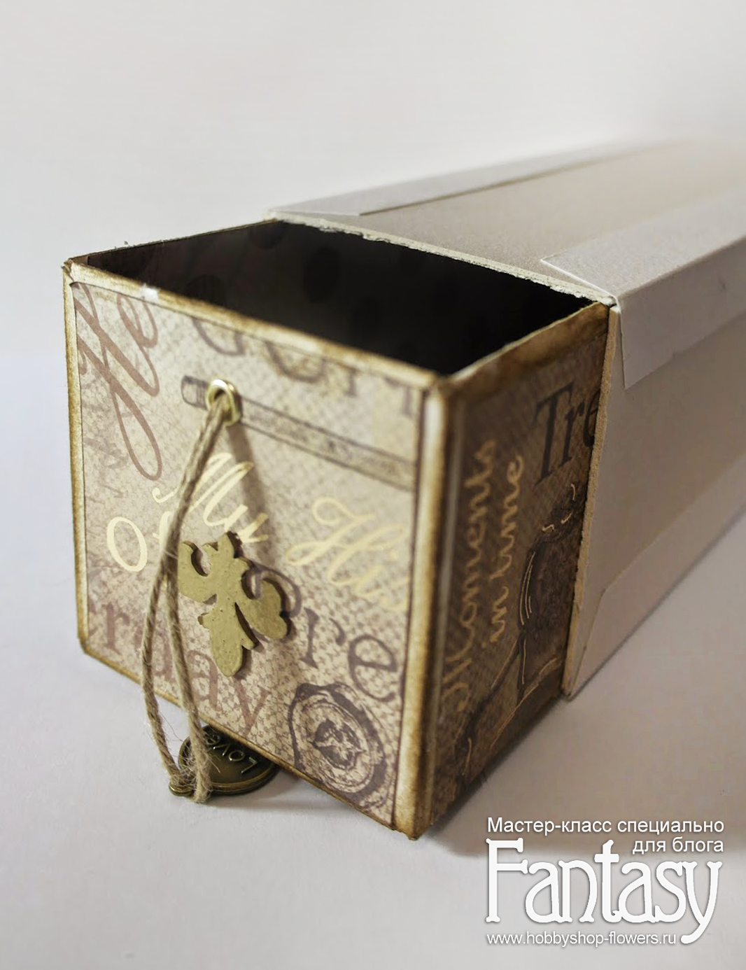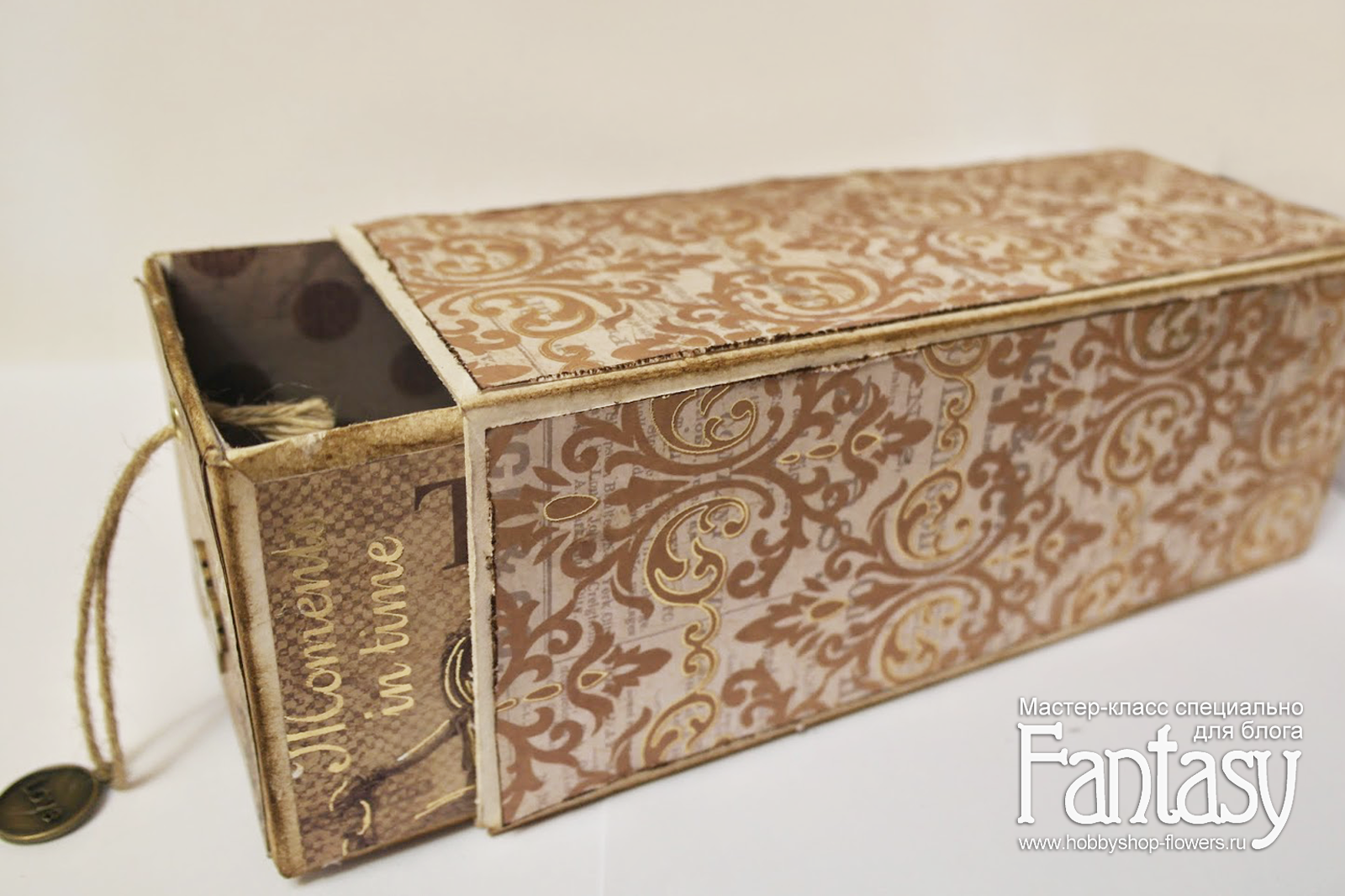 Тонируем края и обклеиваем коробочку скрап-бумагой - и внутри, и снаружи.