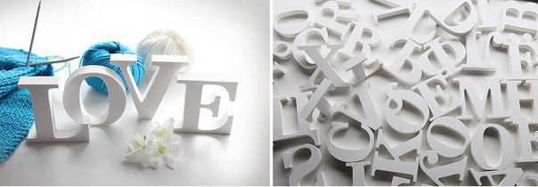 Такие буквы можно сделать на заказ либо купить уже готовые варианты. В первом случае размаха для фантазии гораздо больше: вы сможете декорировать буквы по своему вкусу, составлять собственные авторские коллажи или сделать буквы необычной формы.