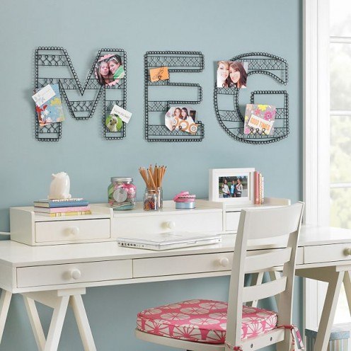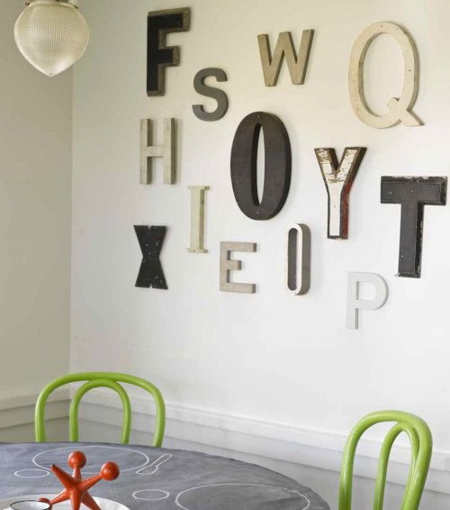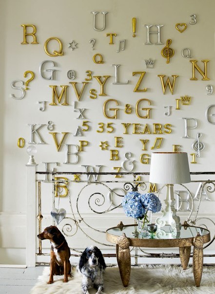 Для привязки «буквенного» интерьера к своему хозяину в декоре используют первые буквы собственных имен, фамилий, имен детей, слов или крылатых фраз.