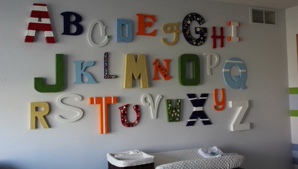 Буквы могут быть плоскими, объемными…латинскими, русскими… деревянными, металлическими, тканевыми — можно подобрать свой вариант для любого интерьера.