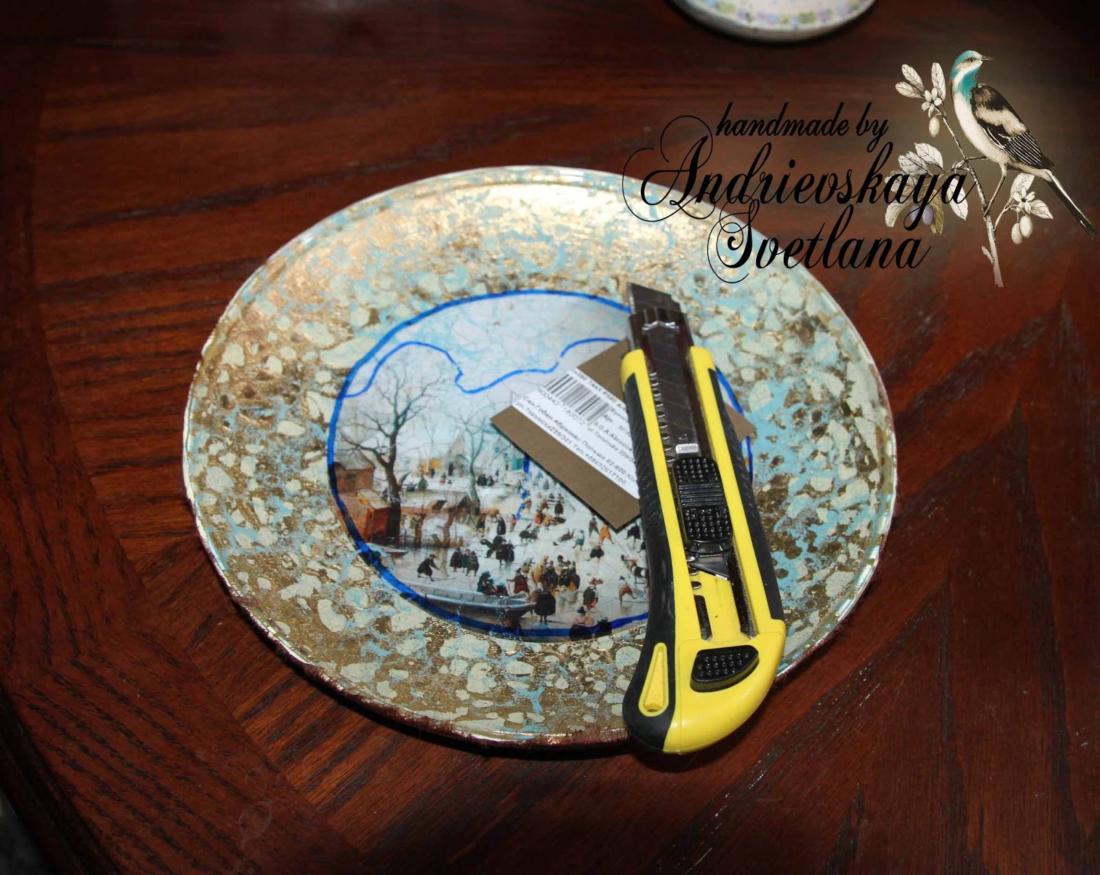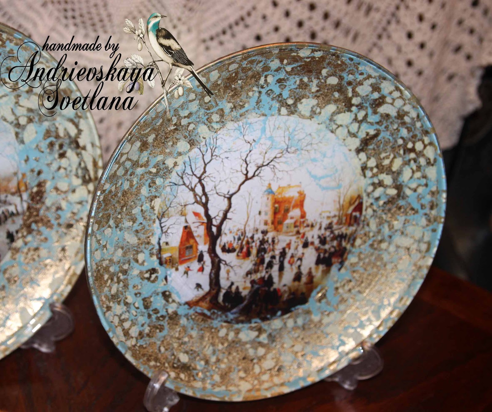 Мастер-класс Обратный декупаж Тарелка Зимний пейзаж
