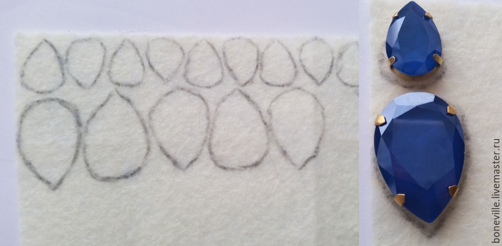 Рождение колье будет происходит в несколько этапов: формирование основы для вышивки, размещение страз, сама объемная вышивка, обработка края и изнанки изделия, сборка колье.