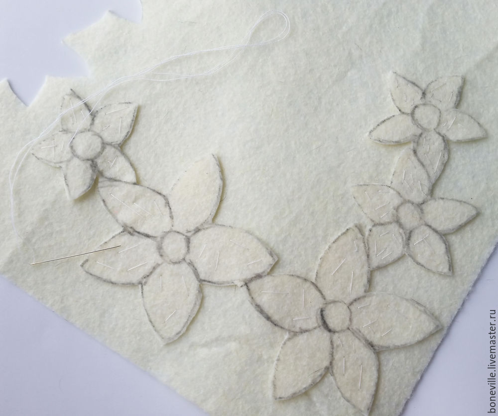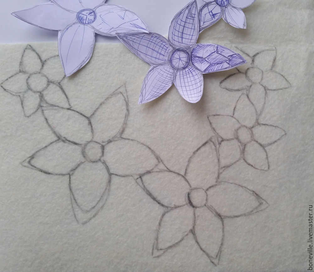 Обводим выкройку на фетре и дорисовываем цветки, чтоб видеть границы рисунка.