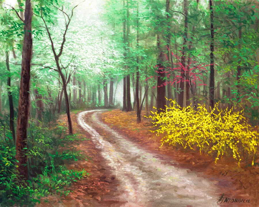 В 1981 году, Antonaccio приехал в Соединенные Штаты и сделал Северная Каролина своего дома. Горы, залитые солнцем долины и тенистых склонах холмов стали неиссякаемым источником вдохновения для художника. По всей территории страны, Antonaccio в основном известный своими цветочными пейзажи, тематика которых варьируется от элегантность сад в уединенном поместье простоте путь с кизила деревья и кусты азалий. Его техника легкий и нежный, и его тематика романтические и нежные; каждая картина вызывает ощущение силы, благодати и изумлением. Из цветочных садов, богато foliaged и наполнена летними ароматами, к огромным панорамным видом холмов и долин, Antonaccio мульти-талантливого с гениальное воображение.