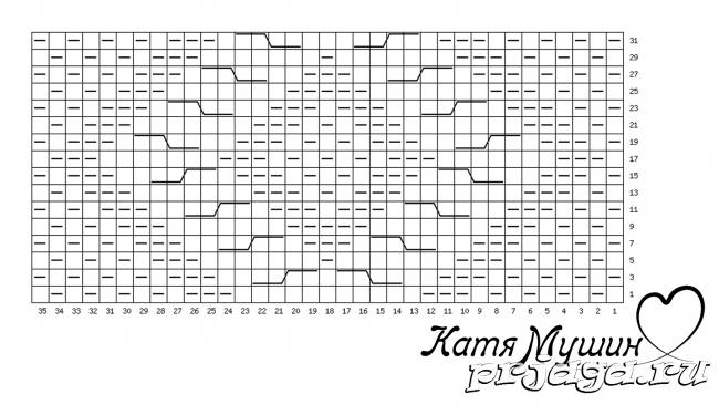 Все четные ряды схемы: лицевые над лицевыми и изнаночные над изнаночными.