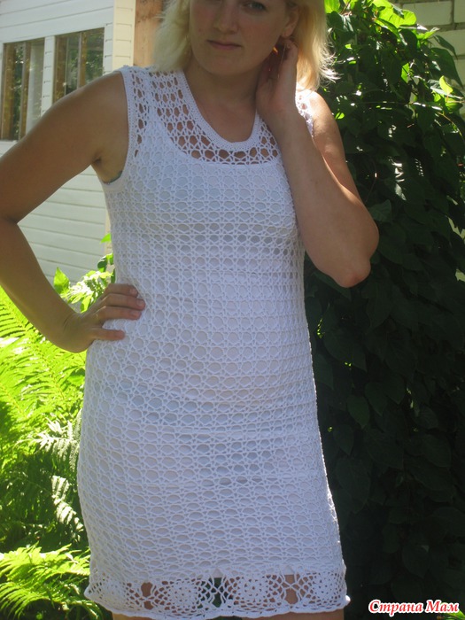 Ниточки, в этом платье, не тонкие! я взяла пряжу "Камтекс"100%хлопок 50г-200м. крючок №2