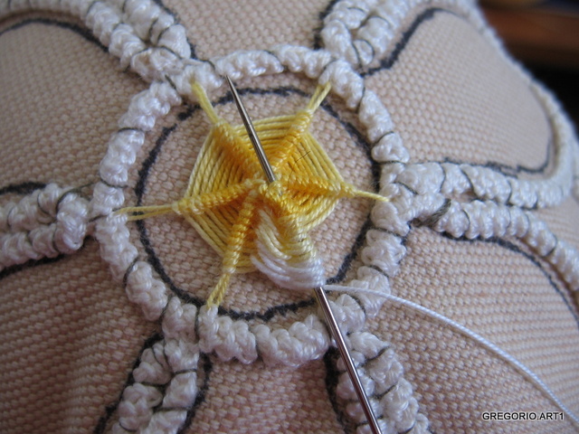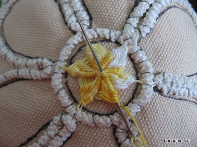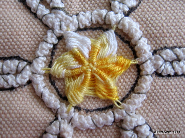 Questo motivo si adatta bene per ricamare la corolla dei fiori, ma si può inserire anche in altri spazi dei nostri modelli di macrame rumeno.
