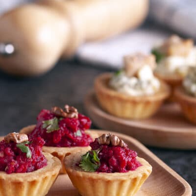 Этот салат – вариант для замены традиционной селедки под шубой, которую до сих пор многие готовят на Новый год. Он для тех, кому хочется сохранить традицию, но в то же время приготовить что-то новое, а также тем, кто не любит селедку. Подаем в порционных стаканчиках – так смотрится красивее