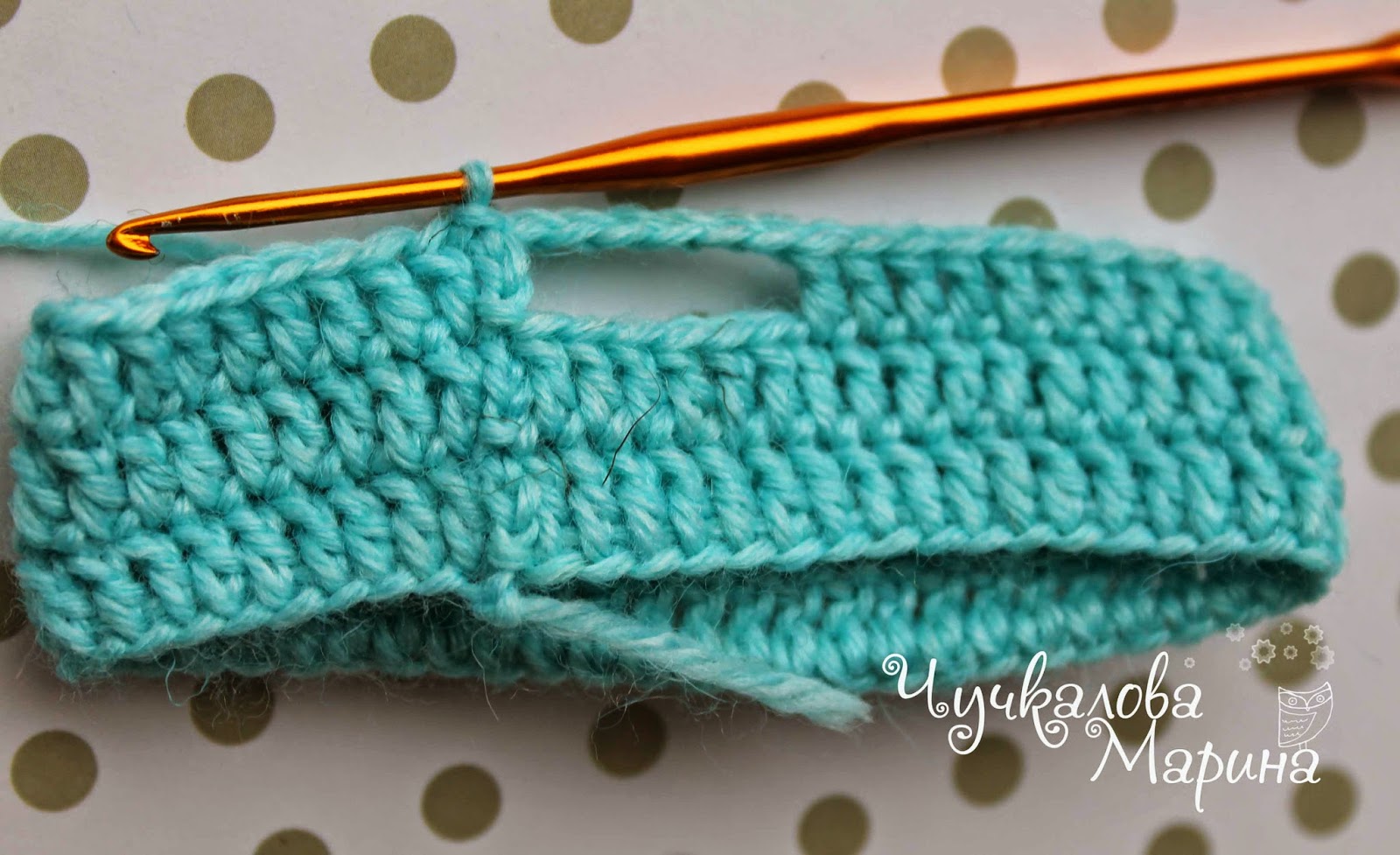 У первого ушка оставьте петлю открытой и приступите ко второму. Нить можно обрезать. После того как свяжете второе ухо, не отрывая нити продолжайте вязание: