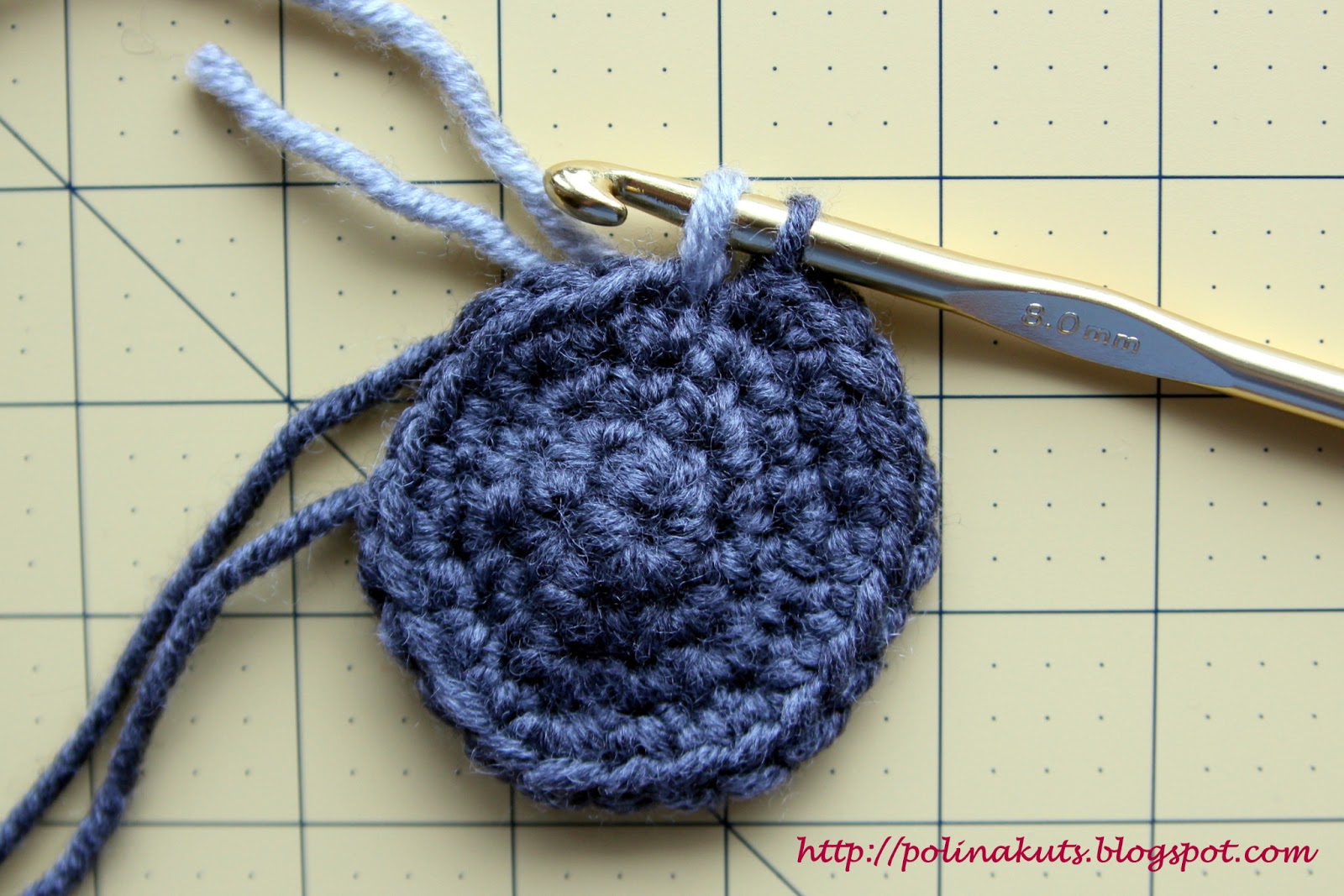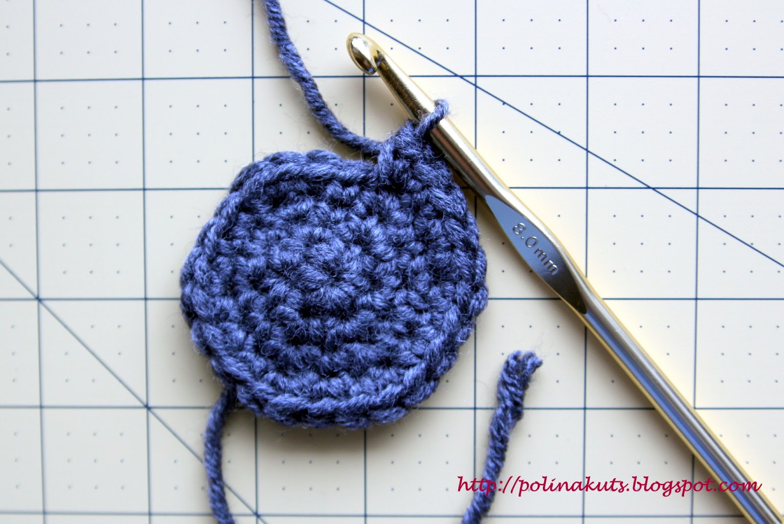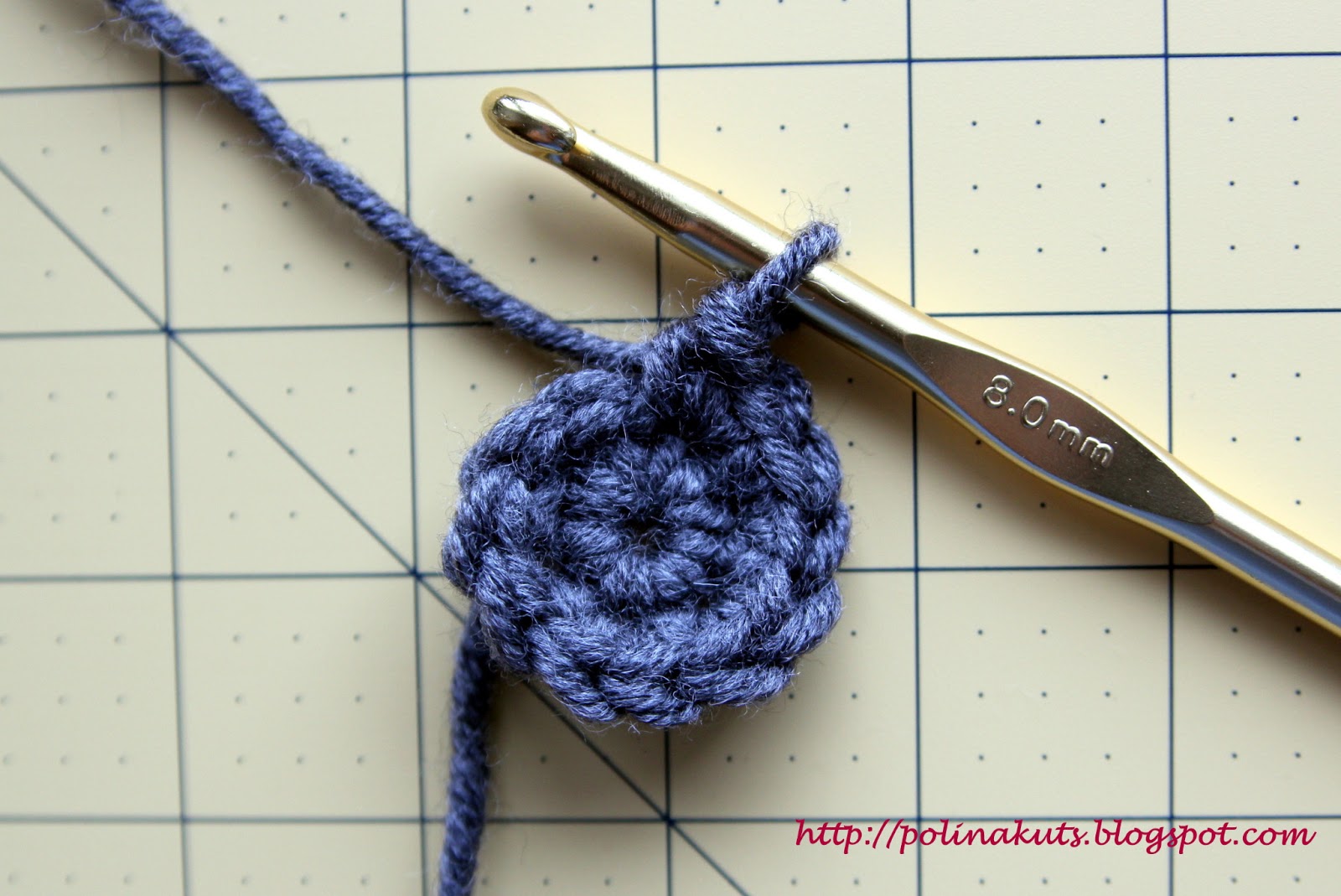 Уточнение: обратите внимание, какой мальнькой кажется окружность, но при этом в последующмих рядах плотность вязки немного ослабнет, и именно этих 24-х петель хватит, чтоб обхватить всю ладонь. Поэтому не прибавляйте больше петель, а то придется распускать. Еще раз напомню, что количество петель и рядов зависит от толщины вашей пряжи,и мои числа - лишь относительные рекоммендации.