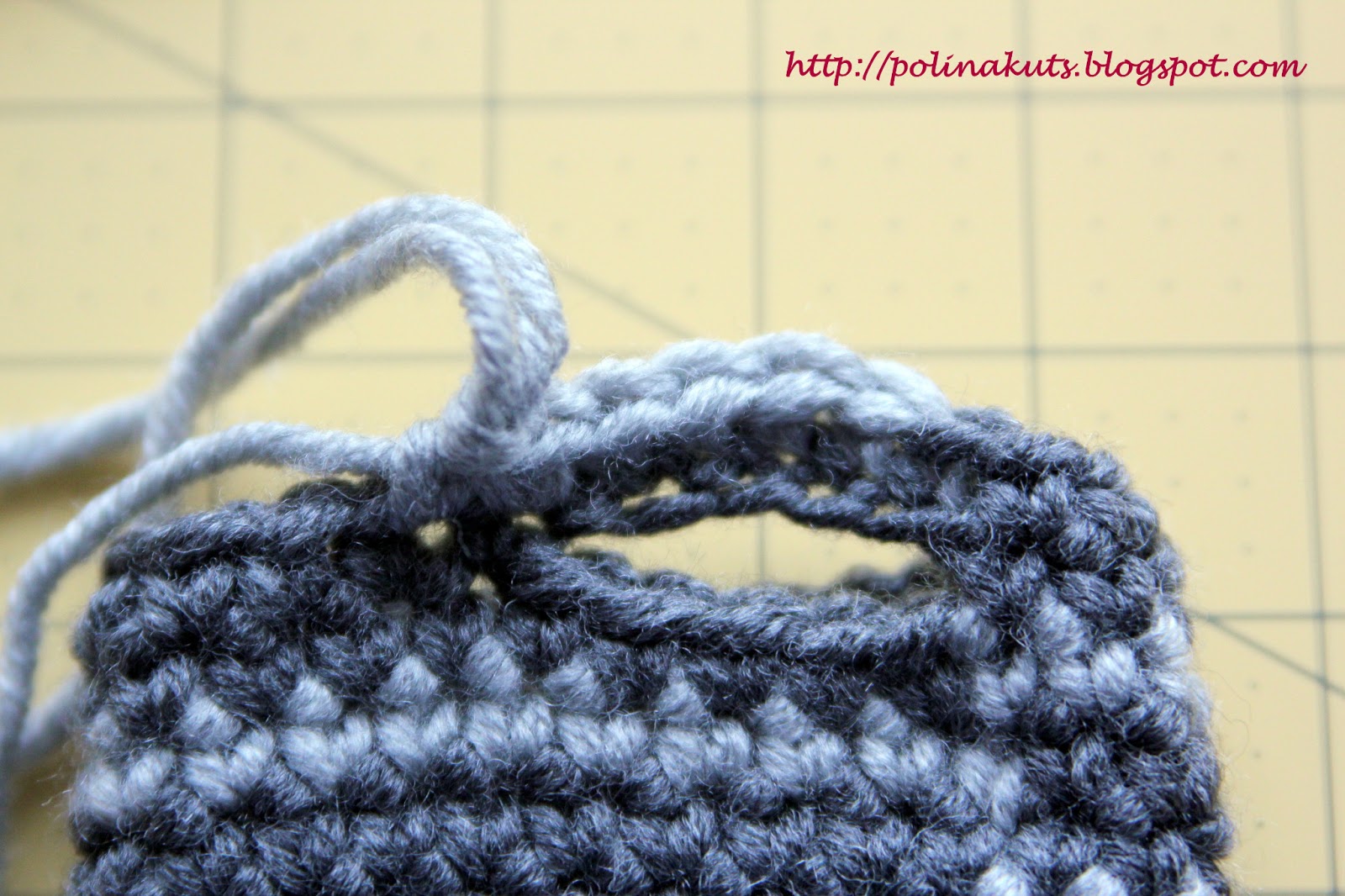 В каждом ряду важно помнить, где он начинается. Чтобы не сбиться, лучше помечать начало рядов кусочком контрастной нитки.