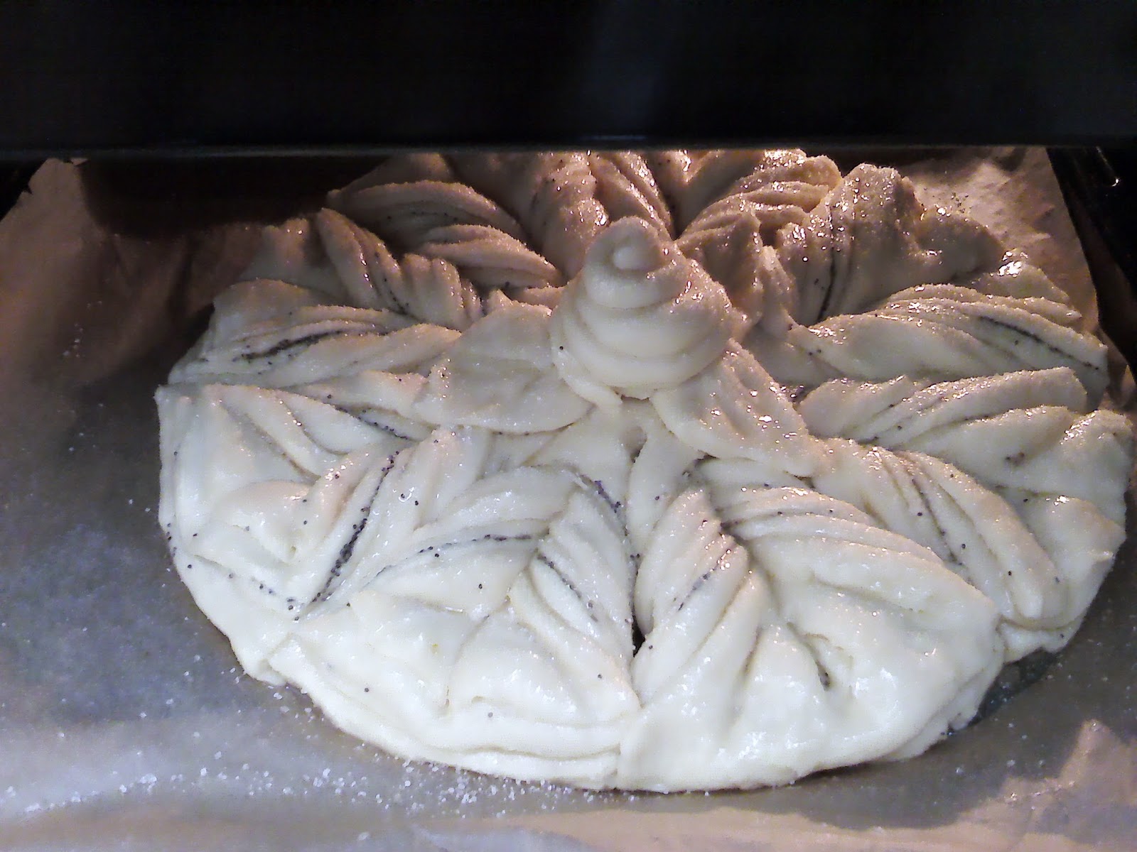 Смазываем маслом, посыпаем сахаром и маком