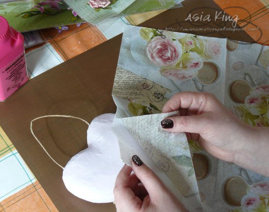 И конечно нам потребуется для декора сердца подходящие по замыслу салфетки и текстильные украшения.