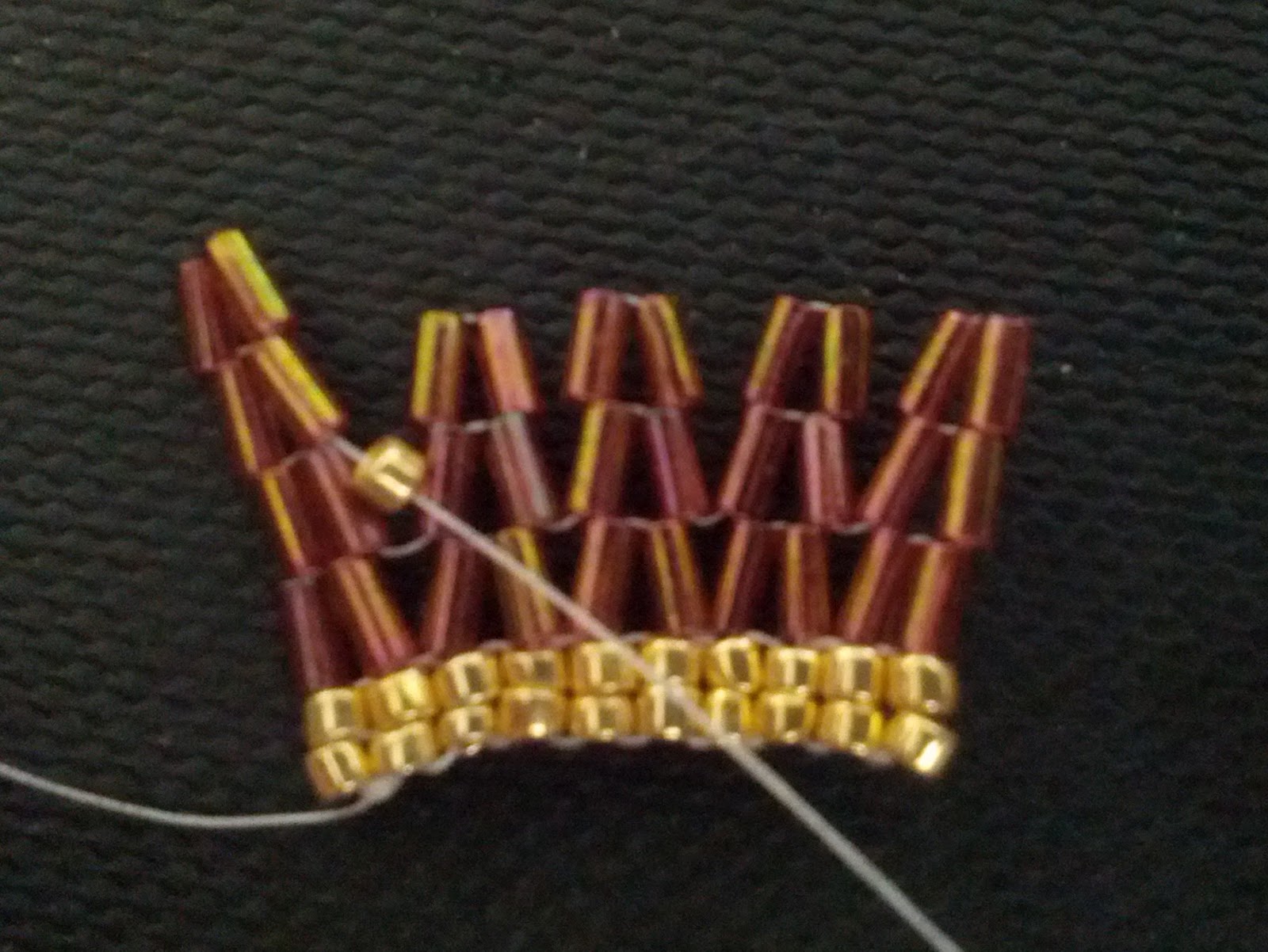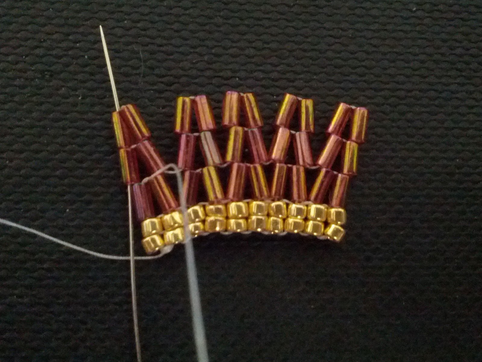 Продолжить елочка стежки стеклярус через строку - пять стежков всего.