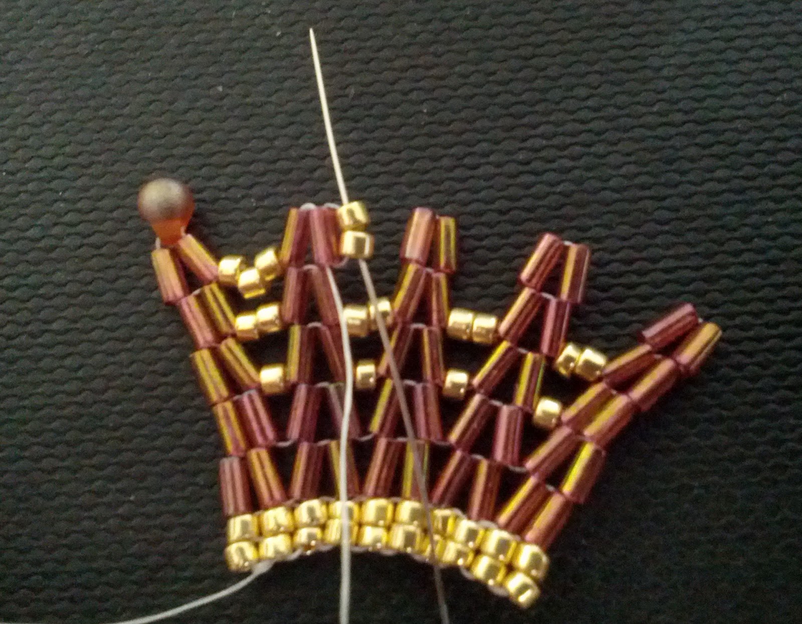 Строка бахромой из бисера (или не), спуститься через последнюю горную в строку, выполните 'поворот', а уже затем иголку через существующие бисероплетения до тех пор, пока ваш поток, выходящий из Горна, показано на рисунке.