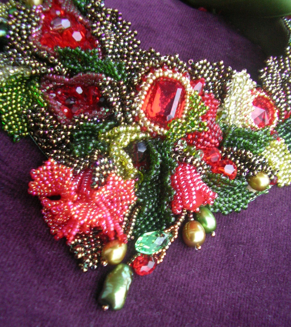 [600x571]Хочу сказать, что фамилии некоторых из них можно встретить среди имён финалистов более поздних конкурсов, в частности, Bead Dreams 2009 года. Мне особенно запомнились работы "Egyptian Waves Collar" Мет Иннмон (бисер), "Transcendence 3" Мелиссы Брэдфорд (глина) и "Midnight Hour" Деборы Смит (хрустальный бисер), они есть в галерее выставочных работ (ссылка выше).