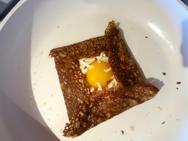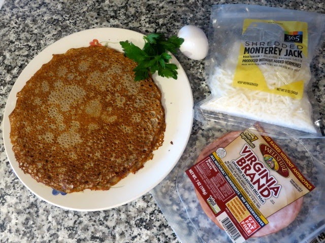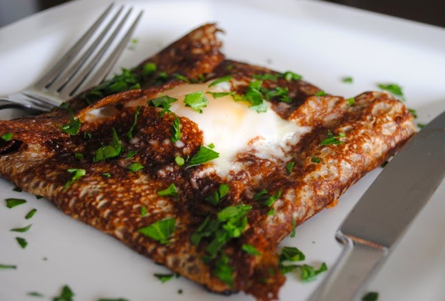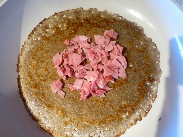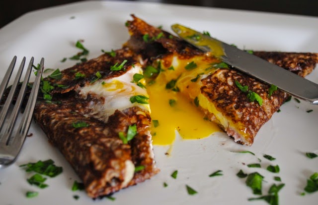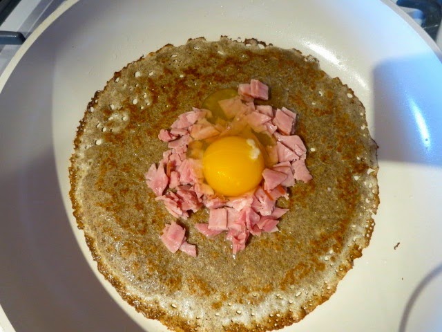 Предлагаю вам креативный, небанальный способ утилизации нескольких вчерашних блинов! Немного ветчины и сыра, которые практически всегда есть в холодильнике, яйцо, 10-15 минут времени - и вуаля! Красивый, интересный ужин готов! И называется этот ужин не "я там старые блины разогрела," а "у нас сегодня классическое французское блюдо - crêpes complètes!" (То есть "полный блин!") Да-да, такой способ приготовления блинов принадлежит французской кулинарии (в очередной раз убеждаюсь, насколько изящно и с воображением во Франции умеют готовить и подавать даже самые простые вещи.) Традиционно для этого блюда используются крепы из гречневой муки ("crêpes au sarrasin"), которые также называются "галеты по-бретонски" ("galettes bretonnes.") Так что, если хотите совершенной аутентичности, сделайте гречневые блины, и тогда вы с полным правом сможете их назвать "galettes bretonnes complètes!" Красиво, правда? И само блюдо симпатичное: свернутый квадратиком блин с загнутыми к центру краями, в серединке которого весело подмигивает вам своим желтым глазком яичница.