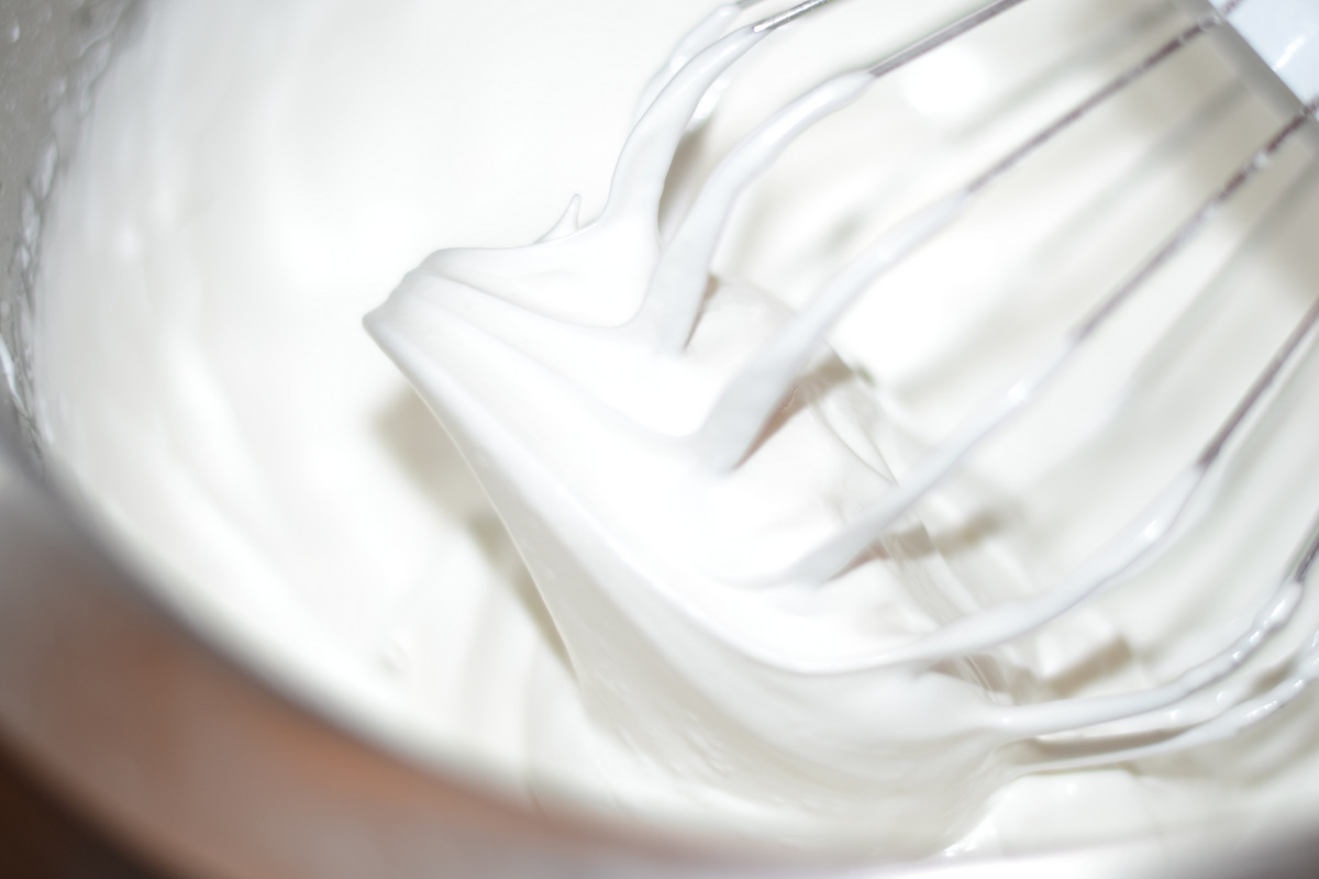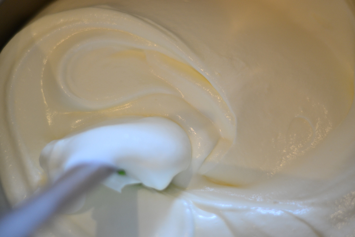 взбиваем с несколькими каплями лимонного сока в крепкую пену, потом по
