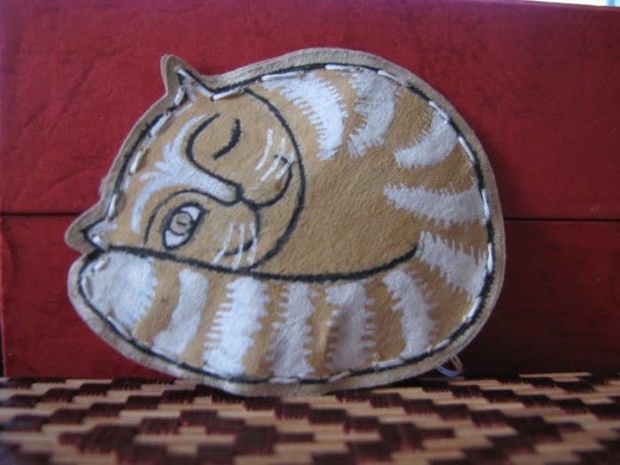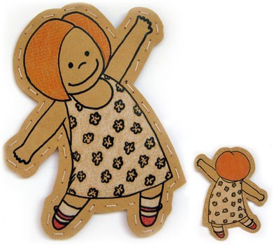 На газете или оберточной бумаге рисуется контур зверюшки или человечка, верхняя часть красится или не красится - в зависимости от замысла, по контуру вырезается сразу два листа, подкладывается бумага или вата и по краю прошивается ниткой. Всё! Если контур простой (как мой кот, например), то это 15 минут времени. А в набивку ещё можно добавить специи, чтобы куклы пахли»