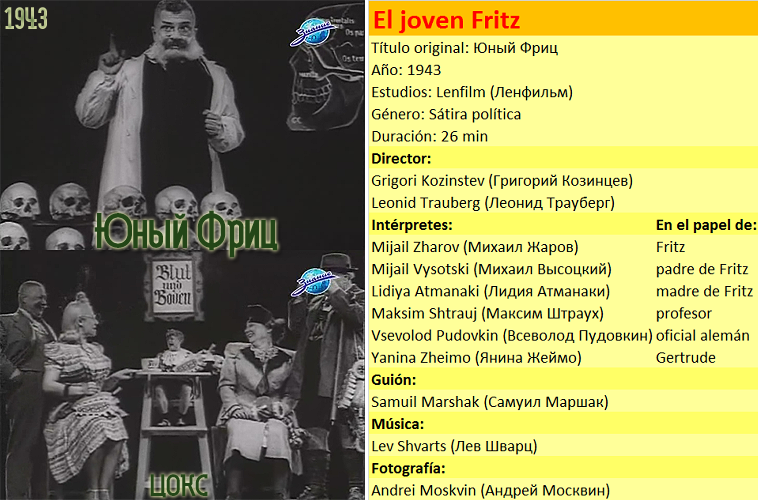 Второй фильм из «Боевых киносборников», в котором я снималась, тоже вышел в 1942 году. Назывался он «Юный Фриц», сценарий написал Самуил Маршак. Главную роль там сыграл Михаил Жаров. У меня была небольшая ролька немецкой девочки Гертруды. Роль отрицательная, и мне это было очень интересно: прежде я снималась только в положительных ролях. Режиссерами были Григорий Козинцев и Леонид Трауберг.