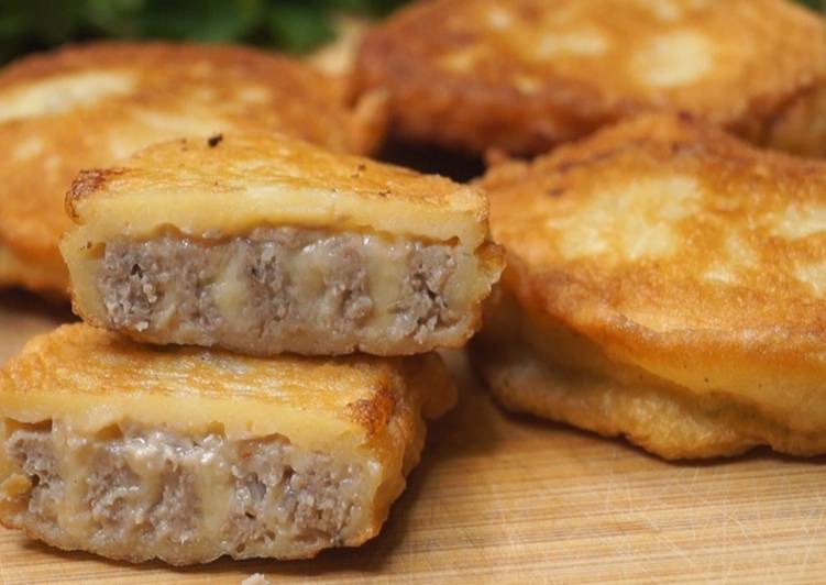 Фарш -500гр. Луковица – 1шт. Чеснок сушеный – 1/3ч.л. Базилик – 1/3ч.л. Приправа к мясу – 1/2ч.л. Сыр – 150гр. Яйцо – 1шт Для кляра: Молоко – 250 мл. Яйца – 2 шт.