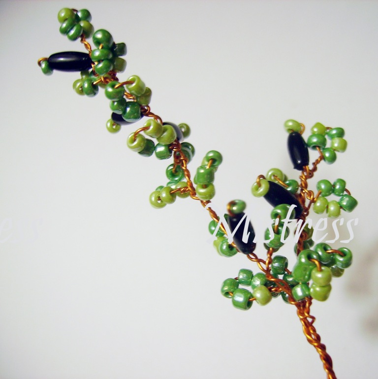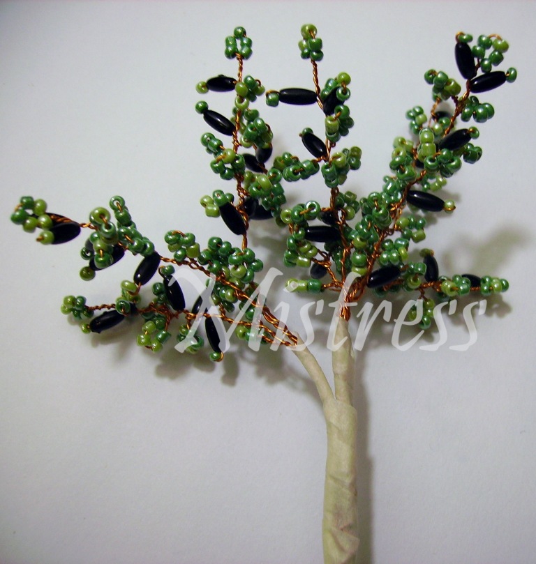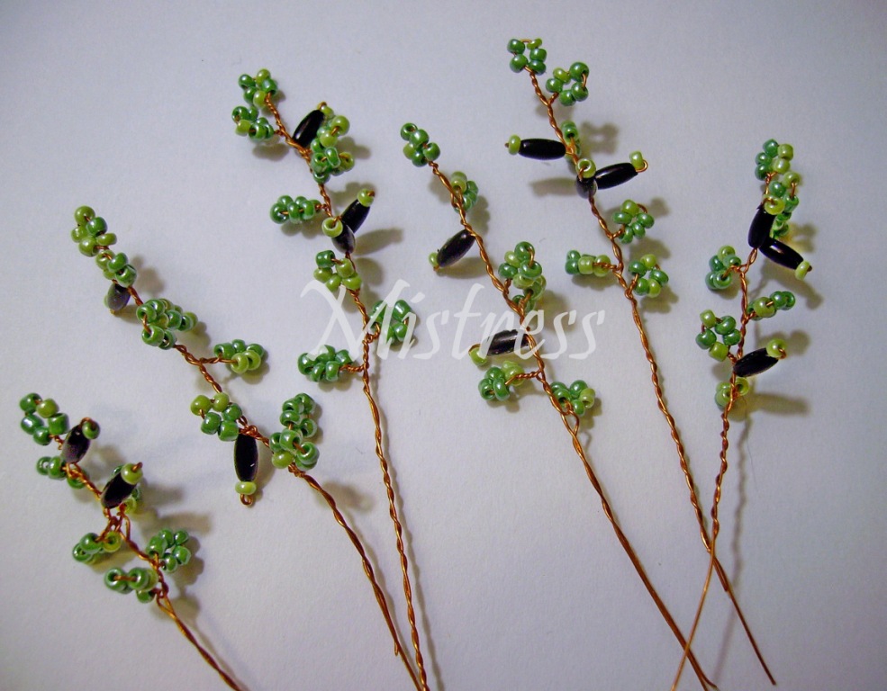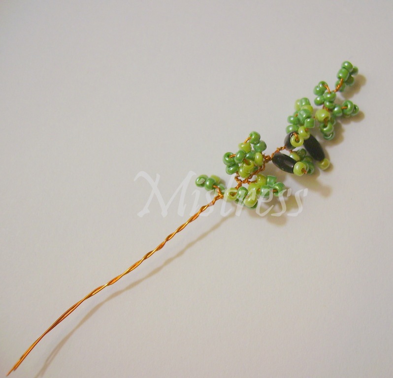 1. Смешиваем бисер зеленого и оливкового цвета.